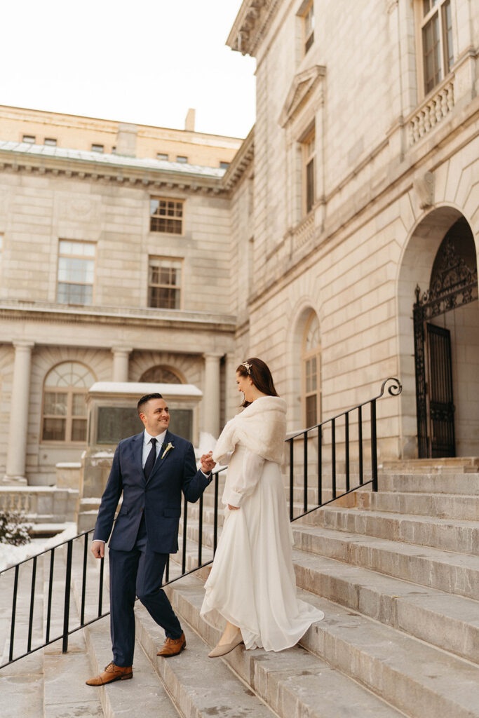 Absolutely. City hall itself is beautiful—with marble staircases, vintage woodwork, and soft natural light that looks stunning in photos. As a Portland, Maine wedding photographer, I love how elegant and timeless portraits at City Hall feel.
