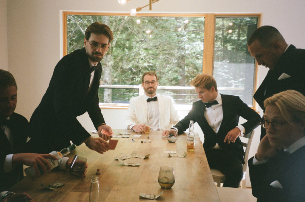 Josh got ready at Emma’s dad’s house. He played poker with his friends, smoked cigars, and enjoyed the time leading up to the ceremony. It was relaxed and simple in the best way.