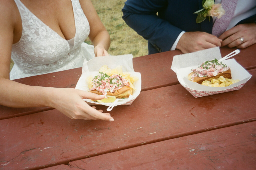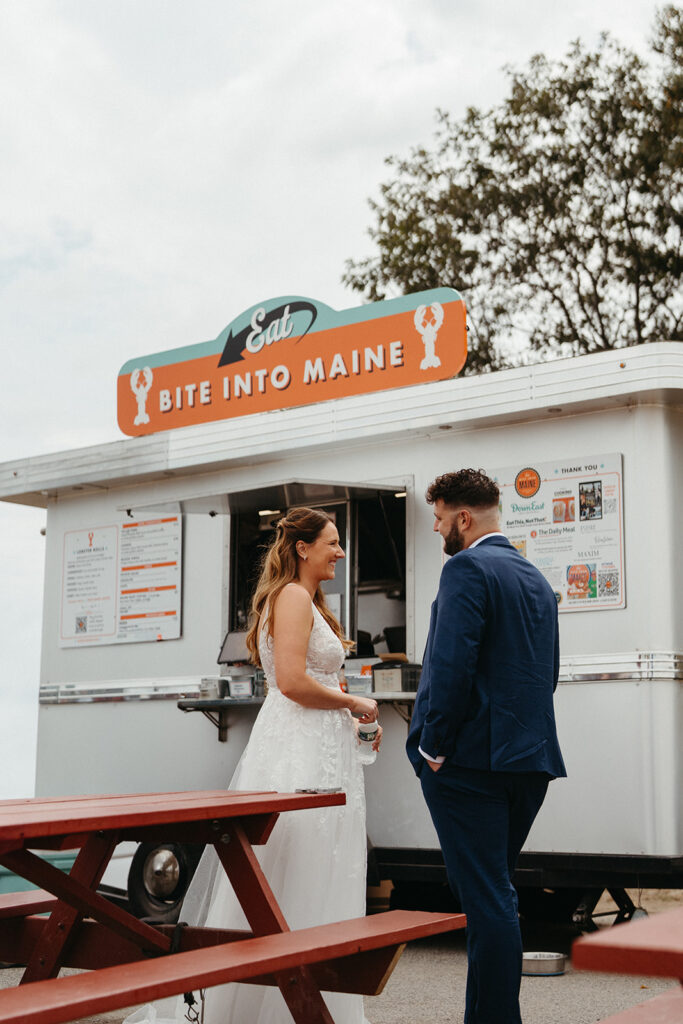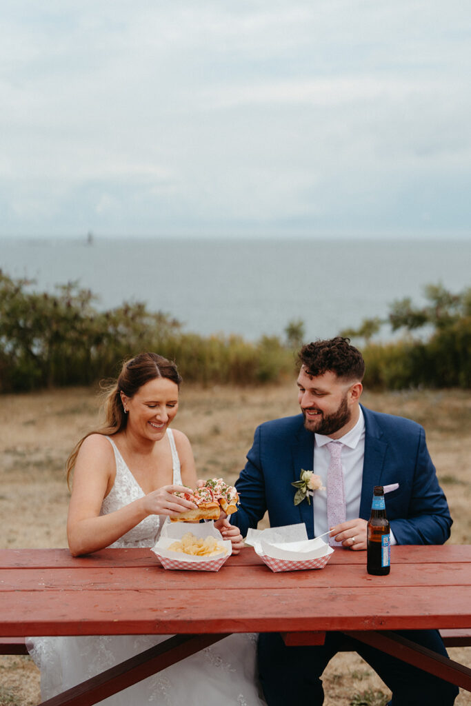 We wrapped up the day at Portland Head Light, where Cassidy and Matt grabbed lobster rolls with a view. The Bite Into Maine food truck at Fort Williams is a classic stop and the perfect way to add a very Maine moment to an elopement day. Enjoying lobster rolls overlooking the ocean and lighthouse felt like the ideal ending.
