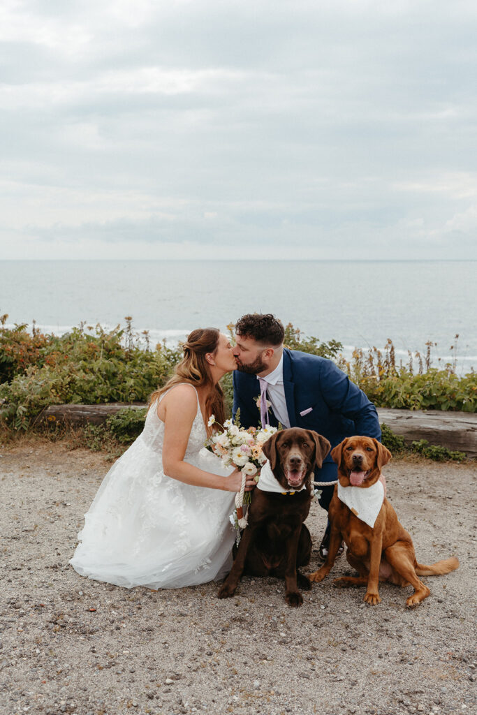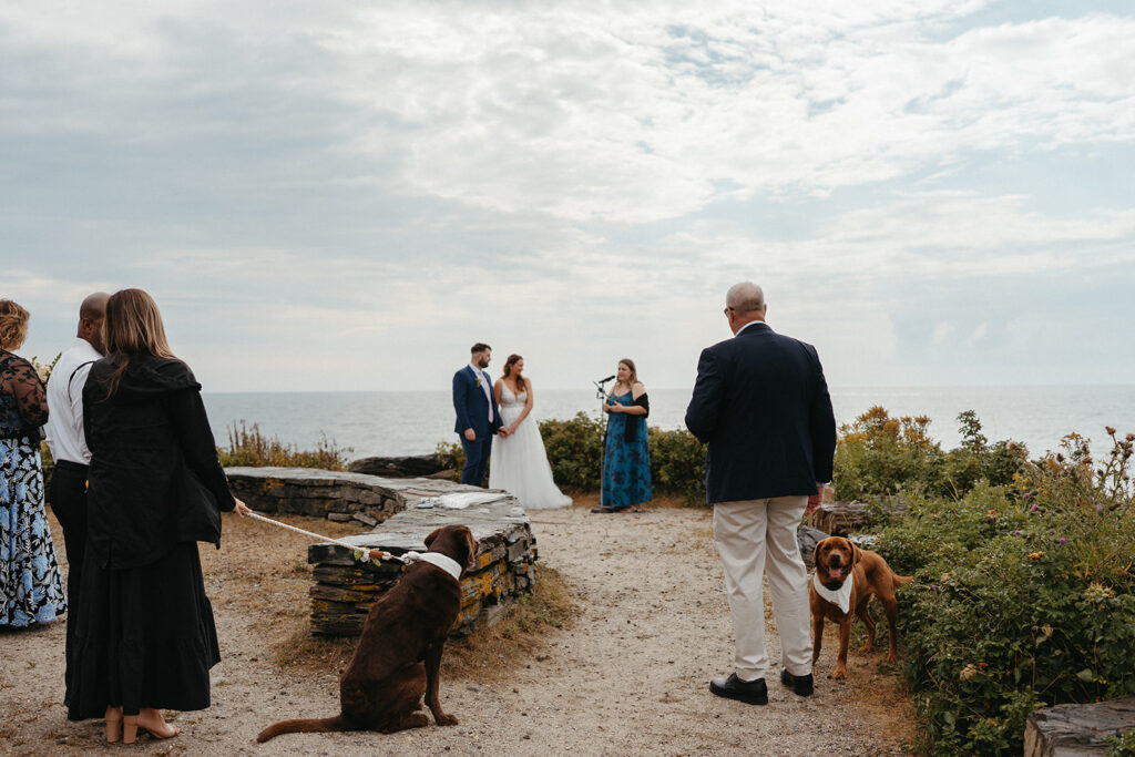 One of the sweetest parts of Cassidy and Matt’s day was how thoughtfully they included their dogs in their ceremony. A couple of close friends acted as dog handlers, which kept things relaxed and low-stress. Their ceremony was casual, heartfelt, and deeply personal, surrounded by ocean views and the sound of the waves in the background.